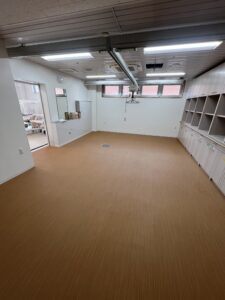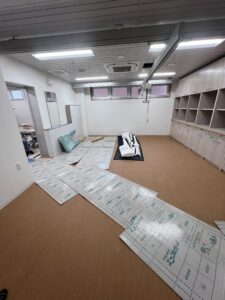 1F大浴場、脱衣所の作業前の状態です。