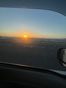 帰宅途中のアップです。 ↓ 夕陽が眩しい!